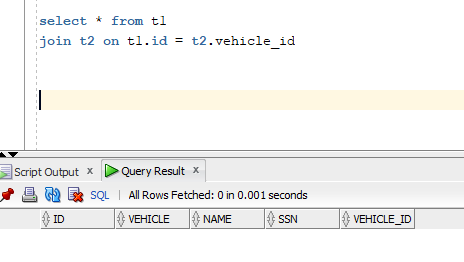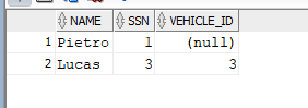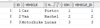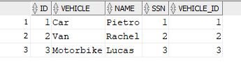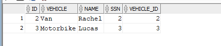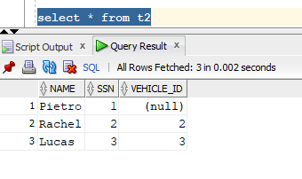 If we query table t2 now we can see that the first record has the VEHICLE_ID set to null